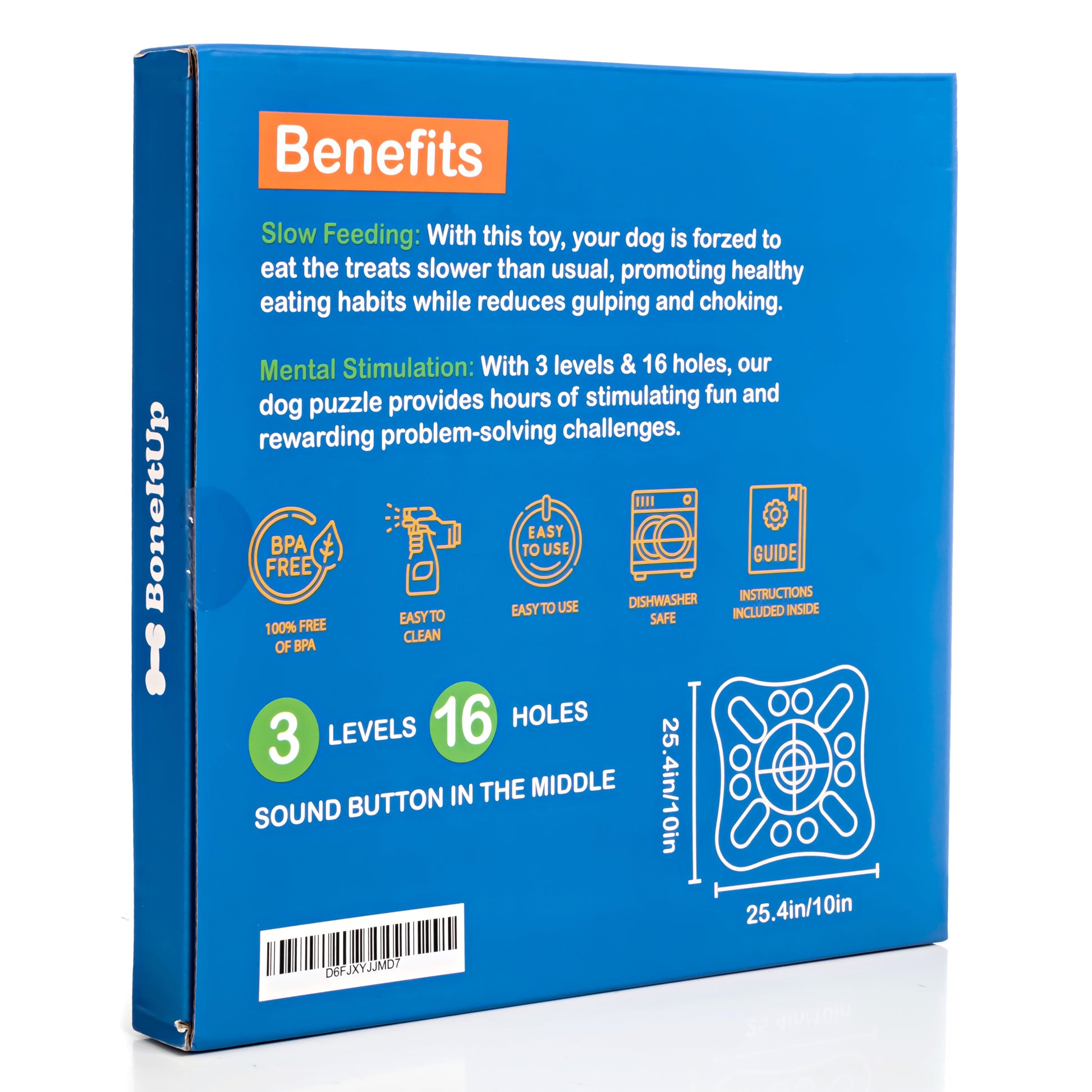 🧠 3 Difficulty Levels – Adjust the challenge to suit your dog’s intelligence and experience